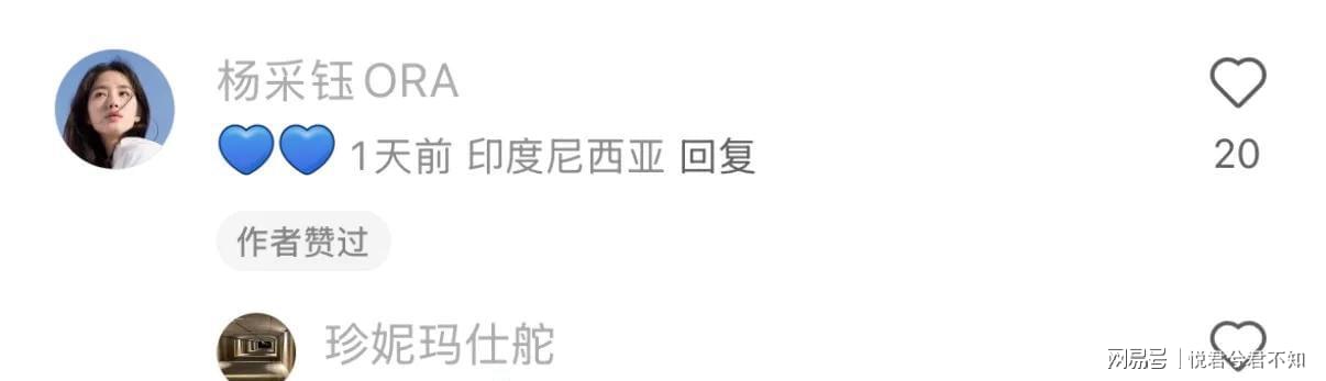 杨采钰随后在评论区留下两个蓝色爱心,暗戳戳发糖太甜了。